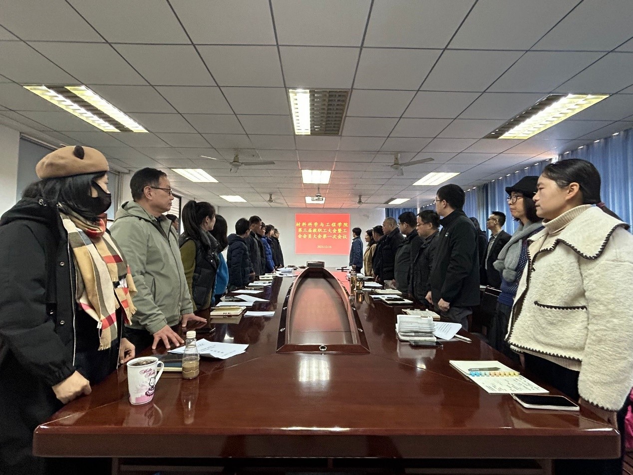 12月16日下午,材料科学与工程学院在K3-401会议室召开了第三届教职工大会暨工会会员大会第一次会议。学院全体教职工、工会会员参会,会议由学院党总支部书记高飞主持。会议在《义勇军进行曲》中拉开序幕。