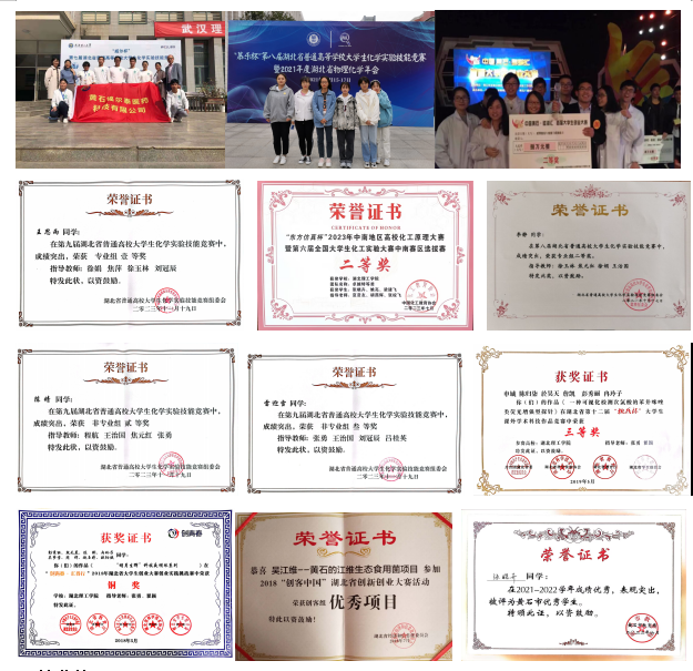 近年来,学生获得全国大学生英语竞赛、全国大学生化工实验大赛、全国大学生数学建模竞赛等国家级学科竞赛23项,获得湖北省普通高校大学生化学实验技能竞赛、湖北省大学生“挑战杯”比赛等省级竞赛62项。学生获得国家级“互联网+”创新创业项目、省大学生创新创业训练项目等项目21项。