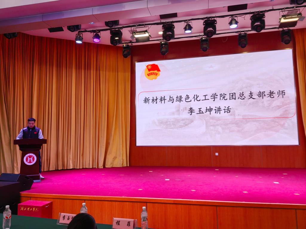 随后李玉坤老师发表致辞。他紧扣二十届四中全会关于法治建设的部署要义,结合青年成长与时代责任,激励广大团员自觉将宪法精神内化于心、外化于行,以实际行动做到尊法、学法、守法、用法,在青春的赛道上勇担法治使命。
