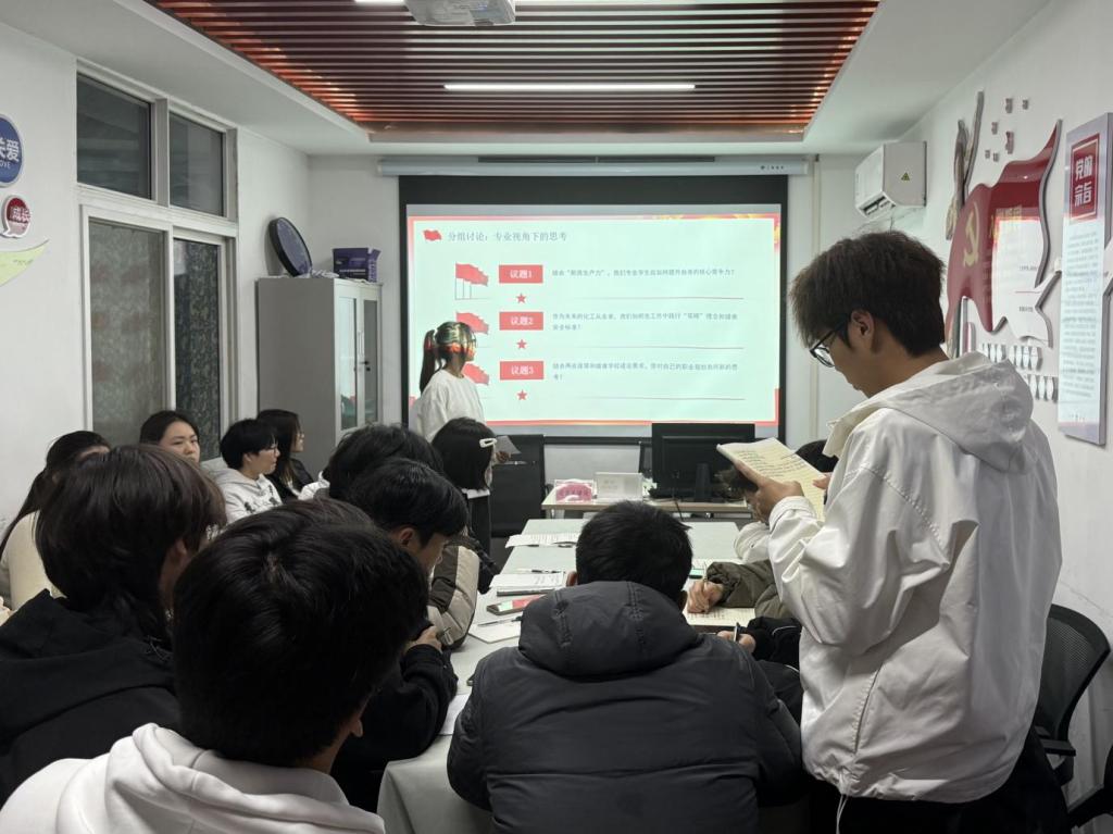 在议题研讨环节,学生代表们结合专业特色踊跃发言。大家围绕可降解材料技术创新与市场应用、新能源材料研发与产业化、生物制药创新发展、绿色化工工艺升级等热点议题展开深入探讨,纷纷分享自己的学习感悟。同学们纷纷表示,将以两会精神为方向指引,聚焦绿色化工与新材料技术攻关,助力打通科技成果“产用鸿沟”;主动对接行业发展需求,把个人职业规划融入“双碳”目标,争做绿色创新领域的先行者与实干者。现场思想碰撞充分,展现出新时代青年学子立足专业、心系家国的责任担当。