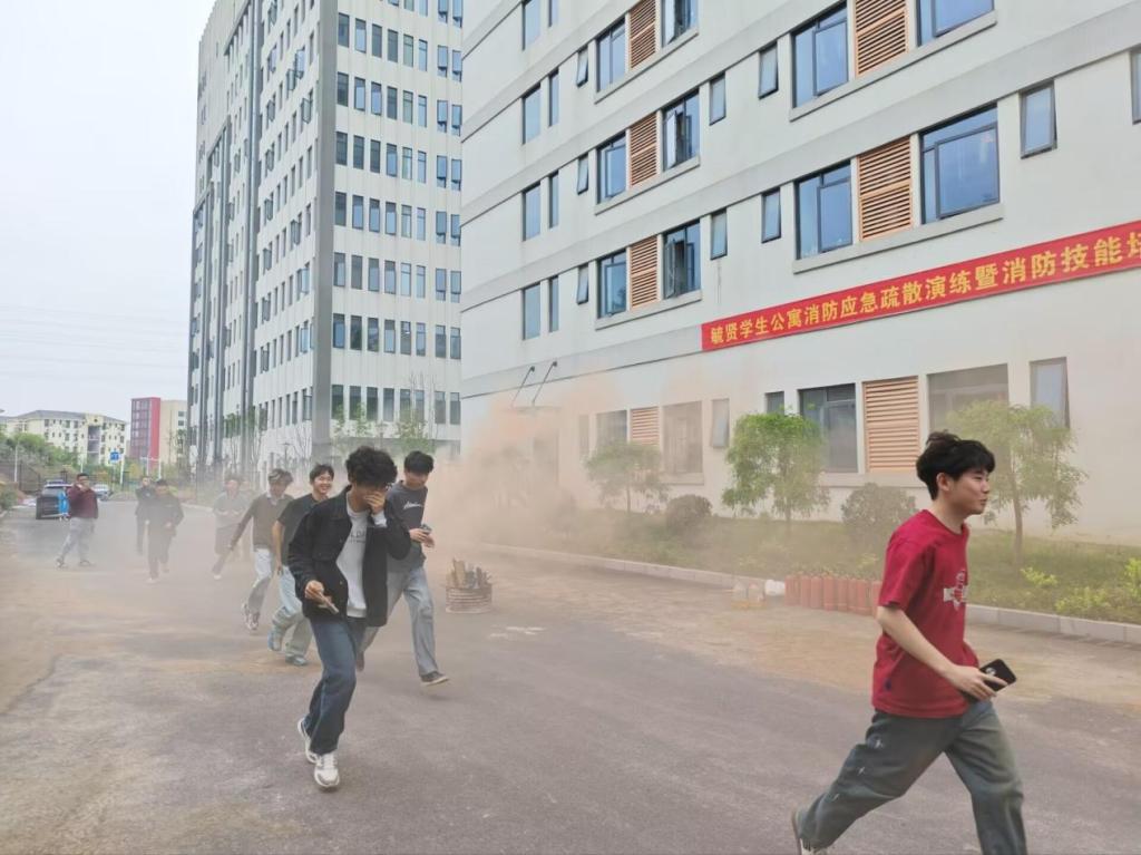 演练启动瞬间,模拟火情警报信号迅速发出,现场工作人员立即按照预定方案,快速引导公寓内师生用湿毛巾捂住口鼻、弯腰低姿,沿着预设疏散路线,快速、有序、安全撤离至指定安全集合区域。整个疏散过程紧张有序、衔接顺畅,师生严格遵守疏散纪律,听从指挥、高效配合,圆满完成应急疏散全流程。