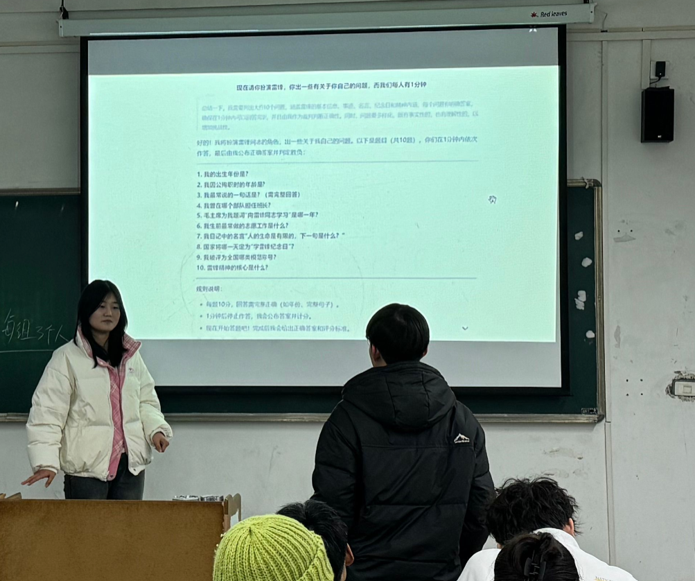 雷锋纪念日当天,志愿者们通过使用deepseek扮演雷锋来开展答题游戏。活动以“快问快答”形式展开,参赛者需在1分钟内回答“数字雷锋”生成的10道与雷锋生平、语录、精神内涵相关的题目。活动现场还设置了雷锋事迹展板、经典语录墙等互动区域,不少学生答题后驻足阅读,打卡分享。参与者们坦言:“原来雷锋同志也会写日记、爱拍照,他的形象更立体了。”