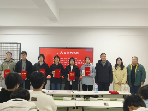 2024 年 12 月 18 日下午,化学与化工学院于求实一站式学生社区隆重举办 2024年学生工作表彰大会。此次大会旨在表彰优秀、鼓励先进,为全院学生树立典范,进一步推动学院学生工作迈向新台阶。化工学院党总支部副书记闵建华、辅导员刘霞、苏家兴以及学生代表共同出席本次活动,大会由 “十大励志之星” 李晓红同学担任主持。