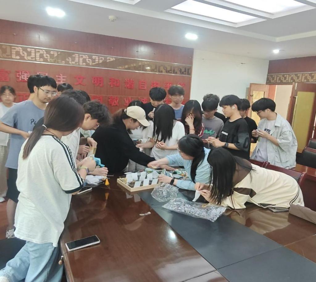 在香囊制作体验环节,大家纷纷化身为心灵手巧的“民俗传承者”。他们认真地研究着不同香料的特性,按照老师讲解的比例,将各种香料进行混合。有的同学为了让香囊的香气更加独特,还精心搭配了不同的香料组合,仿佛在进行一场充满创意的“香气实验”。随后,同学们将混合好的香料小心翼翼地装入香囊袋,每一个动作都充满了对传统文化的敬畏与热爱。尽管不少同学是初次尝试,但在互动指导下,一个个造型精巧,香气馥郁的香囊逐渐成型。活动室内欢声笑语不断,传统文化在指尖焕发出青春活力。