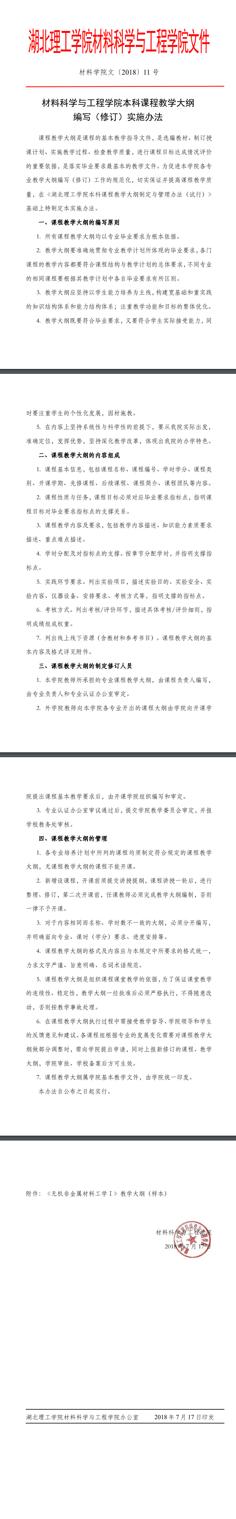 《材料科学与工程学院本科课程教学大纲编写(修订)实施办法》