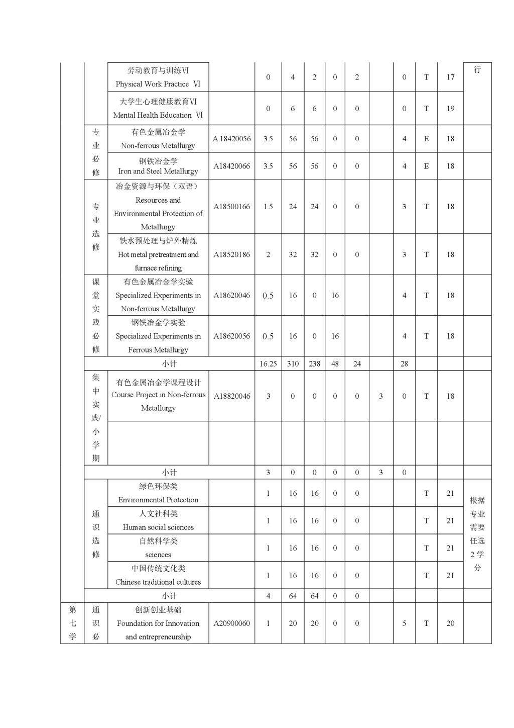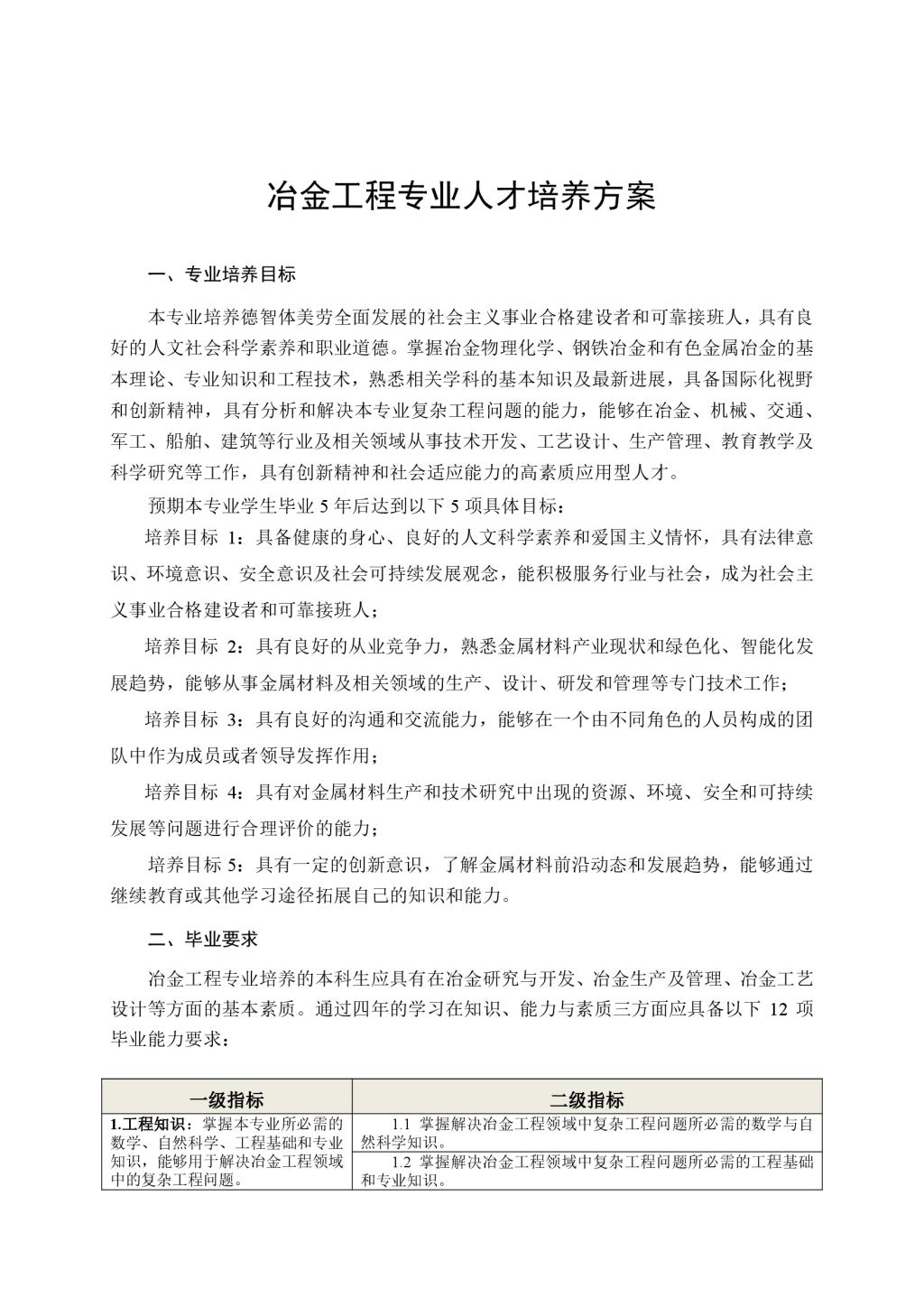 2021冶金工程本科专业培养计划(最新版)(定稿)